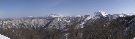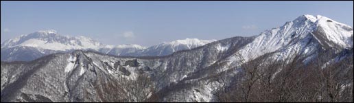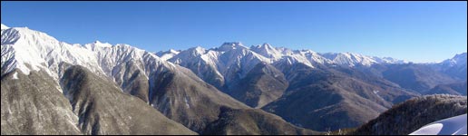 Вид на Фишт, Амуко и ГКХ с г. Сахарной, апрель 2005 года