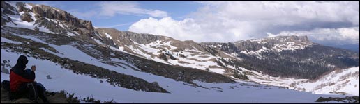 Вид на хребет Каменное море под Инструкторской щелью, май